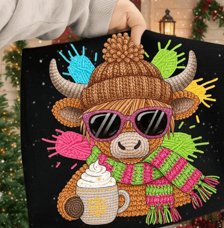 Freezin' Cow Faux crochet Graphic Apparel